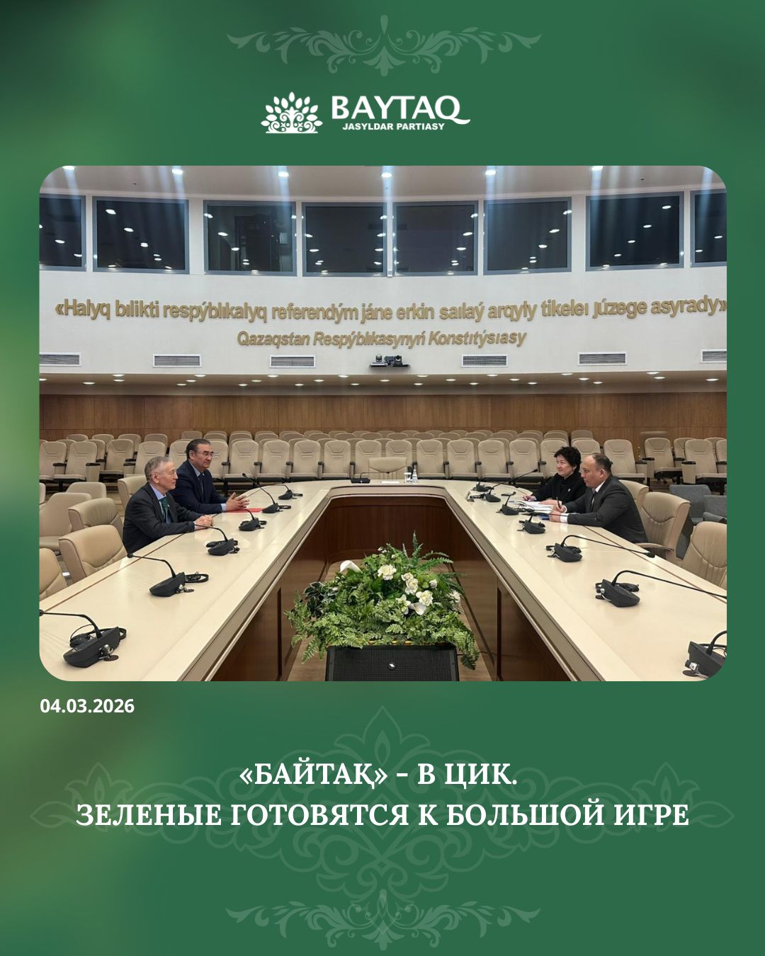 Еліміздегі «Байтақ» экологиялық жасылдар партиясы Орталық сайлау комиссиясында маңызды келіссөз жүргізді. Делегацияны партияның халықаралық қатынастар және парламентаризм жөніндегі хатшысы Мұрат Тәшібаев бастап барды. Кездесу барысында олар Орталық сайлау комиссиясы аппаратының басшысы Әлия Ғалимовамен бірқатар өзекті мәселелерді талқылады.