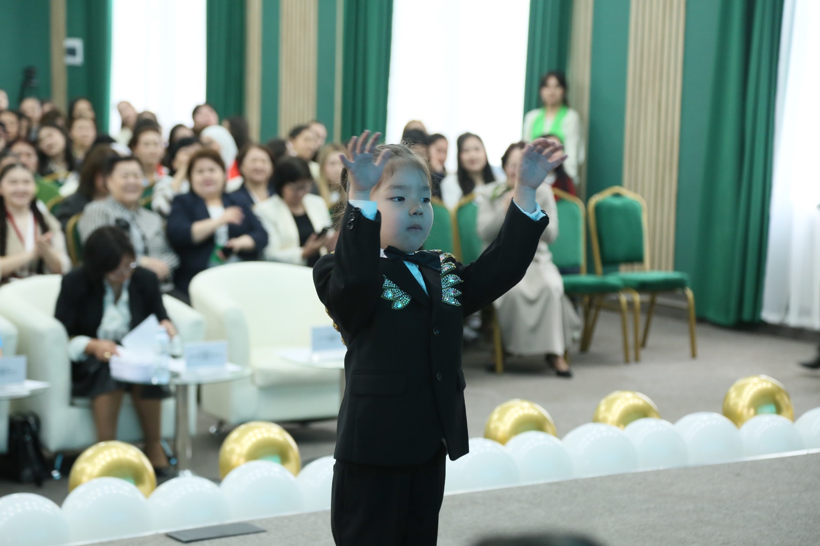 Салтанатты жиында Қазақ ұлттық қыздар педагогикалық университетінің Басқарма төрағасы – Ректор Бейбіткүл Сәрсемханқызы Кәрімованың құттықтау сөзі оқылып, педагогика және психология институтының директоры Гүлжан Оразаева қатысушыларға сәттілік тіледі.